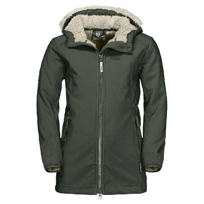 Jack Wolfskin Kissekat Coat Girls Winddichter Softshellmantel Mädchen 116 grün thyme green