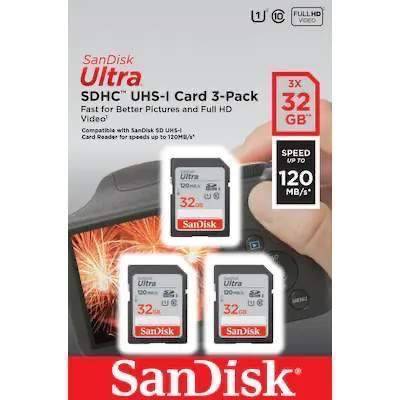 Sandisk Ultra 32 GB SDHC Speicherkarte (120 MB/s, Class 10, UHS-I) 3er Pack