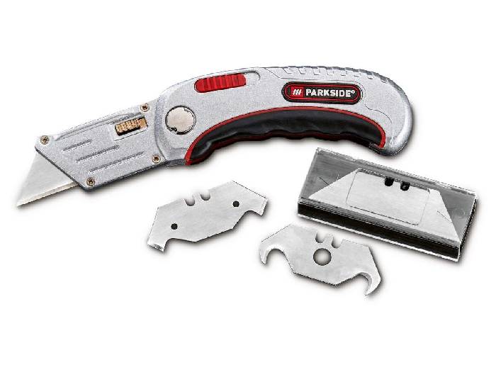 Bei Lidl bekommt man zur Zeit das PARKSIDE® Multiklingen Cutter-Set für nur 14,94 €. Im Preisvergleich zahlt man zur Zeit 17,94 €. Lidl gibt zu dem Cutter-Set noch folgende Infos an: - Für Schneidearbeiten in Teppich, Pappe, Karton und Papier - Mit Antirutschgriff - Klinge in den Handgriff einklappbar - Schneller und werkzeugfreier Klingenwechsel - In praktischer Aufbewahrungstasche - Enthaltenes Zubehör: 3 Klingenmagazinen: 10 x Hakenklinge, 10 x Trapezklinge, 8 x Vorritzklinge Material: Metall, Stahl Maße: - Aufgeklappt: ca. 16,5 x 4,4 x 1,5 cm - Geschlossen: ca. 10,3 x 3,9 x 1,5 cm Gewicht: ca. 405 g EAN: 4055334397667