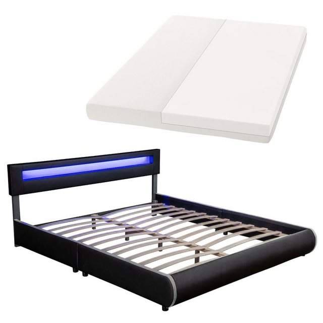 Juskys Polsterbett Sevilla, 180x200 cm, RGB-LED, Kunstleder, inkl. Matratze