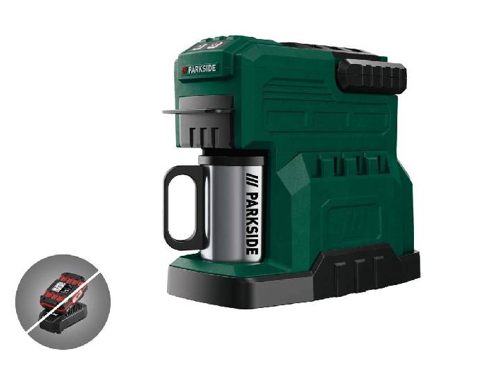 Aktuell gibt es bei Lidl die PARKSIDE® 20 V Akku-Kaffeemaschine »PKMA 20-Li A1« ohne Akku und Ladegerät im Angebot für nur 40,94 €. Der Preisvergleich liegt aktuell bei 48,94 €. Lidl gibt zu der Akku-Kaffeemaschine noch folgende Infos an: - Stets frischer Kaffee direkt vor Ort – auch ohne Steckdose - Geeignet für gemahlenen Kaffee und Kaffeepads - Robustes Gehäuse mit Tragegriff zum einfachen Transport - klein und handlich - Abnehmbarer Wassertank - (max. 240 ml) - Mit Überhitzungsschutz und automatischer Abschaltung bei zu wenig Wasser - Kein Kaffeefilter erforderlich durch praktisches Trägersieb mit Halterung - Padhalterung passend für handelsübliche Kaffeepads - Inkl. passender Tasse aus rostfreiem Edelstahl (mit Deckel - staubgeschützt) und Kaffeelot - Gerät kompatibel mit allen Akkus der Serie PARKSIDE X 20 V Team - Empfohlener Akku: 20 V (4 Ah) - Lieferung erfolgt ohne Akku und Ladegerät - Den passenden Akku sowie das Ladegerät kannst du hier bestellen.Enthaltenes Zubehör: Kaffeefiltereinsatz für Kaffeepulver, Siebeinsatz für Kaffeefiltereinsatz, Kaffeepadeinsatz, Messlöffel, Kaffeebecher Technische Daten: - Tassen je Akkuladung (20 V / 4 Ah): bis zu 4 Tassen (à, 150 ml) - Laufleistung je Akkuladung (20-V-Akku): ca. 300 ml (2 Ah) / ca. 600 ml (4 Ah) / ca. 1200 ml (8 Ah) - Brühdauer: ca. 6 min - Kapazität Wasserbehälter: ca. 240 ml - Spannung: 20 V - Maximale Leistung: 500 Watt Material: Edelstahl, Kunststoff Maße: ca. 14,1 x 25,3 x 22,7 cm Gewicht: ca. 1,4 kg EAN: 4055334805742