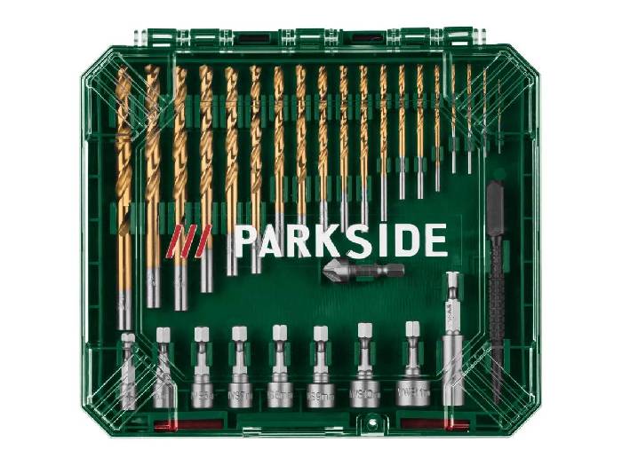 Aktuell gibt es bei Lidl das 75-teilige PARKSIDE® Bohrer- und Bit Set im Angebot für nur 23,94 €. Der Preisvergleich liegt aktuell bei 29,94 €. Lidl gibt zu dem Set noch folgende Infos an: - In praktischer Aufbewahrungsbox mit 2 Etagen - Passend zum 12 V Akku-Bohrschrauber PBSA 12 und allen Akku-Bohrschraubern und Bohrmaschinen 75-teilig: - 19 Metallbohrer: 1 / 1,5 / 2 / 2 / 2,5 / 3 / 3 / 3,5 / 4 / 4 / 4,5 / 5 / 5 / 5,5 /6 / 6,5 / 7 / 7,5 / 8 mm - 5 Steinbohrer: 4 / 5 / 6 / 7 / 8 mm - 4 Holzbohrer: 4 / 5 / 6 / 8 mm - 20x Bits (25 mm): PH0 / PH1 / 2 x PH2 / PH3 / PZ0 / PZ1 / 2 x PZ2 / PZ3 / T10 / T15 / T20 / T25 / T30 / SL 0,5 x 3 / SL 0,5 x 4 / SL 0,6 x 5 / SL 1,0 x 6 / SL 1,0 x 6 - 16x Bits (50 mm): PH1 / PH2 / PH3 / PZ1 / PZ2 / PZ3 / T20 / T25 / T30 / T40 / SL 1,0 x 5,5 / SL 1,2 x 6,5 / H3 / H4 / H5 / H6 - 8x Bit-Nüsse: 5 / 5,5 / 6 / 7 / 8 / 9 / 10 / 11 mm - 1x Kegelsenker - 1x Körner - 1x magnetischer Bit-Halt Material: - Bohrer: Stahl - Bits: Stahl - Magnetischer Bithalter: Cr-V Stahl, Edelstahl Maße: Aufbewahrungsbox: ca. 199 x 184 x 47 mm Gewicht: ca 1150 g EAN: 4058143031999