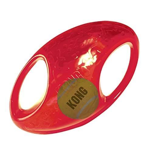 Hundespielzeug: KONG – Jumbler Football – Interaktives Apportierspielzeug mit Tennisball (Farbvar.) – Für Mittelgroße/Große Hunde