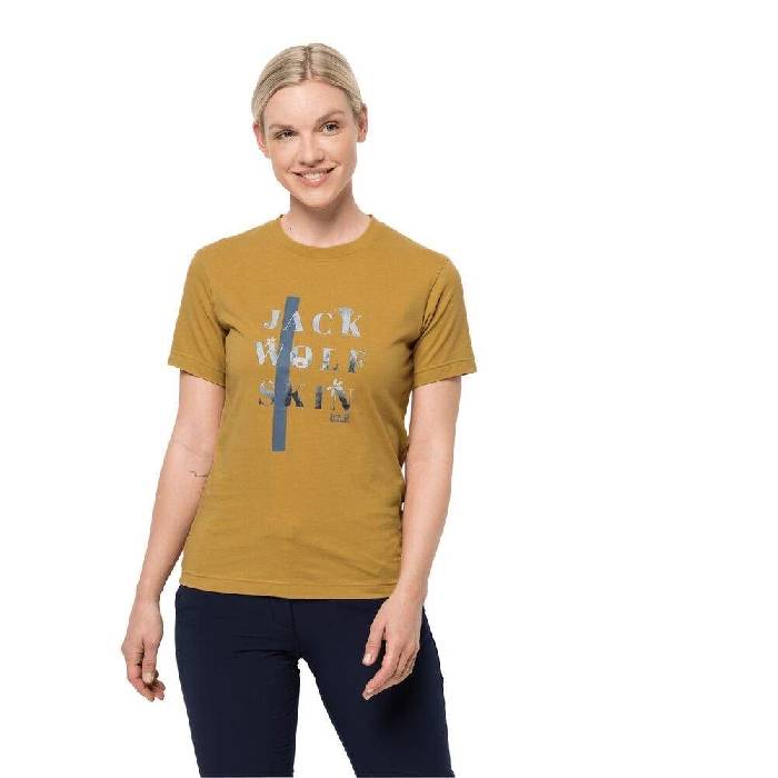 Jack Wolfskin Mountain T-Shirt Women Baumwoll-T-Shirt Frauen L gelb golden amber