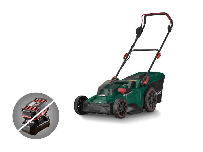 Aktuell gibt es bei Lidl den PARKSIDE® 40 V Akku-Rasenmäher »PRMA 40-Li B3« im Angebot für nur 105,94 €. Im Preisvergleich zahlt man hierfür 157,95 €. Lidl gibt zu dem 40 V Akku-Rasenmäher »PRMA 40-Li B3«, ohne Akku und Ladegerät noch folgende Infos an: - Innovativer Brushless-Motor mit hoher Energieeffizienz - Bis zu 30 % längere Laufzeit gegenüber herkömmlichen Motoren - Bürstenlose, wartungsfreie Motortechnik - Leistungsstark und laufruhig - Zwei wählbare Mäharten: (Auto/ECO-Modus): Automatik-Modus für maximale Effizienz und Schnittperformance / ECO-Modus für leichte Nachschnitte - Zentrale 7-Stufen-Schnitthöheneinstellung - Beidseitiger Rasenkanteneinzug für sauberes, randnahes Mähen - Akku-Einsteckschacht mit Sicherheitsschlüssel und klappbarer Schutzhaube - Ergonomischer, höhenverstellbarer Führungsholm mit Softgrip-Ausstattung - Geschliffenes Messer aus Spezialstahl - Fangsack mit Kunststoffabdeckung mit Füllstandsanzeige und Tragegriff - Schnellverschluss-Klappfunktion zur platzsparenden Aufbewahrung - Empfohlene Akkus: 2 Akkus à, 20 Volt (4 Ah) – zum Betrieb sind 2 Akkus zwingend erforderlich - Praktischer Mulch-Einsatz zur optimalen Wiederverwendung des Schnittguts als Rasendünger - Robustes Gehäuse mit praktischem Transportgriff - ECO-Modus zum energiesparenden Nachschnitt - Gerät kompatibel mit allen Akkus der Serie PARKSIDE X 20 V Team - Lieferung erfolgt ohne Akkus und Ladegerät - Empfohlene Akkus: 2 Akkus à, 20 Volt (4 Ah) – zum Betrieb sind 2 Akkus zwingend erforderlich - Die passenden Akkus sowie das Ladegerät kannst du hier bestellen. Technische Daten: - Schnittbreite: ca. 43 cm - Schnitthöhe: ca. 25–75 mm (7-stufig) - Fangsackvolumen: ca. 50 l - Leerlaufdrehzahl: 2900-3300 U/min Material: Kunststoff, Fiberglas, Spezialstahl - Maße - Rasenmäher: ca. 142 x 47,8 x 103 cm - Durchmesser Holme: ca. 19 mm Gewicht: ca. 15 kg - Alle kompatiblen Geräte unserer 20-Volt-Serie findest du hier: EAN: 4054599021393