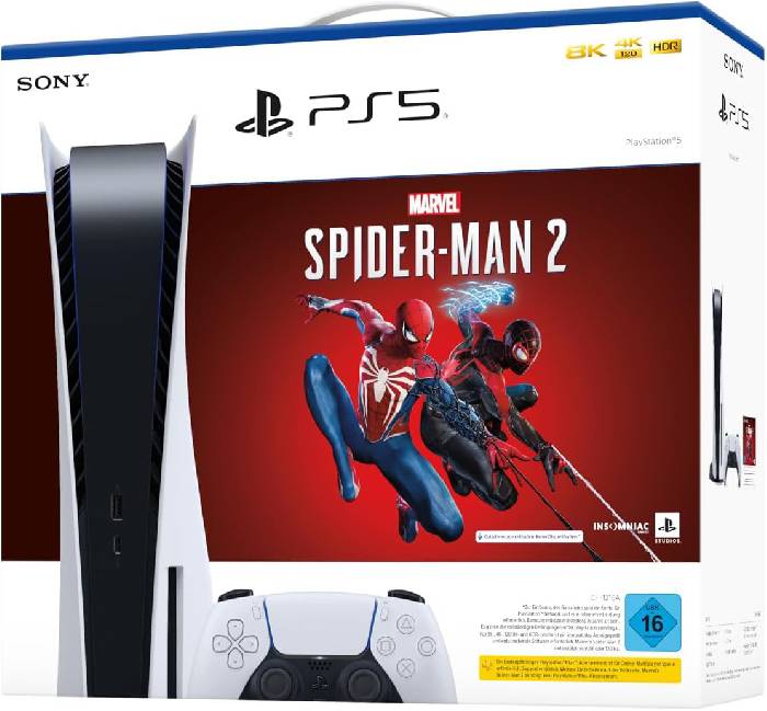 Bei Amazon bekommt man die PlayStation®5 im MARVELS´S SPIDER-MAN 2 Bundle für nur 499,00 €. Mittlerweile ziehen verschiedene Anbieter bei dem Black Week Angebotspreis nach, regulär liegt das Bundle allerdings bei 548,00 €. Das Bubdle beinhaltet unter anderem: - PlayStation 5-Konsole - DualSense™ Wireless-Controller - Gutschein für die Vollversion von Marvel’s Spider-Man 2