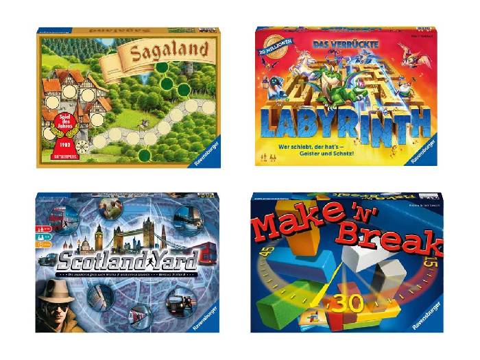 Aktuell gibt es bei Lidl verschiedene Ravensburger Gesellschaftsspiele im Angebot für je nur 23,58 €. Der Preisvergleich liegt aktuell bei 29,98 €. Ravensburger Gesellschaftsspiele Scotland Yard: - Das Kultspiel aus den 90er Jahren erfreut noch immer die ganze Familie und ist mit neuer Auflage zurück. Am Tatort London jagt Scotland Yard den geheimnisvollen Verbrecher Mister X. Die Verfolgungsjagd führt durch die ganze Stadt und die Detektive müssen gut zusammenarbeiten, um ihn zu finden. Das tolle an der neuen Auflage ist, dass das Brettspiel nun auch zu zweit gespielt werden kann. Das Detektivspiel, Tatort London. Scotland Yard jagt den geheimnisvollen Mister X. Ein Spieler ist Mister X, die anderen die Detektive. Eine spannende Verfolgungsjagd beginnt. Doch Mister X ist für die Detektive nicht zu erkennen. Einziger Anhaltspunkt: seine Fahrscheine. Wohin zieht er als Nächstes? Über die Themse? Zurück zum Buckingham Palace? Um Mister X das Handwerk legen zu können, müssen die Detektive Teamwork beweisen und gut zusammenarbeiten. Vorsicht: Mister X trickst gerne alle aus, benutzt auf einmal heimlich eine Fähre und verwischt alle Spuren. Mister X hat gewonnen, wenn er es schafft, bis zum Ende der letzten Spielrunde durch London zu fahren, ohne von Scotland Yard erwischt zu werden. Die Detektive gewinnen, wenn sich ein Detektiv gleichzeitig mit Mister X auf derselben Station befindet. Spannung bis zur letzten Sekunde ist bei diesem Spieleklassiker garantiert! Sagaland: - Seit 40 Jahren begeistert Sagaland Jung und Alt. Der beliebte Klassiker feiert sein Jubiläum mit dieser limitierten Sonderedition im Design der Erstausgabe von 1981. Neu und exklusiv enthalten ist eine Geschichtensammlung mit allen Märchen, die im Spiel zu finden sind. Wer wird der neue Herrscher von „Sagaland“? Wer findet die versteckten Gegenstände, merkt sich den richtigen Fundort und kann am schnellsten zum König im Schloss eilen? Die Spindel von Dornröschen, der Gürtel des tapferen Schneiderleins oder der Turm, von dem Rapunzel ihr Haar herunterlässt – gut versteckt unter Bäumen, befinden sich die Dinge, die der König haben möchte. Bei diesem Gesellschaftsspiel macht sich jeder Spieler heimlich auf die Suche, vor Rivalen auf der Hut und mit etwas Würfelglück im Gepäck. Immer mit dem Ziel, schnellstens zum Schloss zu eilen, um dort die Fragen des Königs nach dem Versteck richtig zu beantworten. Sieger ist, wer als Erster drei Fundorte richtig genannt hat. Sagaland ist ein ideales Geschenk für Jungen und Mädchen zum Geburtstag oder zu Weihnachten. Make 'n' Break: - „Make 'n' Break“ ist die spannende Herausforderung für große und kleine Baumeister. Denn nur wer schnell bauen kann, gewinnt auch. In diesem temporeichen Familienspiel bestimmen die Baukarten, was gebaut werden muss: Unten ein blauer Baustein, oben rot und dazwischen gelb und weiß. Eigentlich nicht schwer, aber die Uhr tickt und tickt und tickt. Also schneller bauen. Und noch schneller – vorbei! Stein für Stein errichten die Spieler immer neue Bauwerke. Aber Achtung: Manche von ihnen haben es in sich. Und los geht’s, die Uhr tickt laut und nur so lange sie tickt, darf gebaut werden. Damit Profis und Anfänger miteinander spielen können, gibt es die Möglichkeit, die Baukarten in zwei Kategorien zu unterteilen. Labyrinth: - Auf der Suche nach geheimnisvollen Gegenständen und Kreaturen durchstreifen die Spieler als Hexe, Zauberer, Prinzessin und Zauberlehrling das Labyrinth. Wer als Erster den Weg hinausfindet, hat gewonnen. Zum Glück haben sie die Magie auf ihrer Seite und können die Wände des Labyrinths verschieben. Auf dem Weg durch das zufällige Muster an Gängen muss jeder Spieler aber zunächst geheime Orte erreichen. Die Geheimniskarten verraten, ob Geist, Schlüsselbund, Eule oder etwas anderes das nächste Ziel ist. Wie gehen Hexe, Zauberer und Co. nun vor? Bahnen sie sich selbst einen Weg oder versuchen sie, den anderen den Weg zu versperren? Wer als Erster alle Geheimnisse erkundet hat und an seinen Startplatz zurückkehrt, ist der Sieger. Durch die zufällige Anordnung der Gängekarten verläuft jede Partie anders. So ist grenzenloser Spielspaß garantiert! Seit vielen Jahren begeistert das einfache und einzigartige Spielprinzip Millionen von Menschen. Scotland Yard: - 1 Spielplan - 6 Spielfiguren - 29 Startkarten - 130 Tickets - 3 Doppelzugtickets - 5 Ticket-Tafeln - 1 Fahrtentafel - 1 Sichtschirm - 2 Ringe für die Bobbies - Altersempfehlung: ab 8 Jahren Sagaland: - 1 Spielplan - 13 Suchkarten - 13 Scheiben mit den gesuchten Dingen - 13 Bäume aus Kunststoff - 6 Spielfiguren - 2 Würfel - 1 Märchenbuch - Altersempfehlung: ab 6 Jahren Make 'n' Break: - 1 Timer - 10 Bausteine aus Holz - 80 Baukarten - 60 Wertungschips - 1 Würfel - Altersempfehlung: ab 8 Jahren Labyrinth: - 1 Spielplan mit 16 festen Gängen - 34 lose Gänge-Karten - 24 Geheimniskarten - 4 detaillierte Kunststofffiguren (Hexe, Zauberer, Prinzessin und Zauberlehrling) - Altersempfehlung: ab 7 Jahren Material: Kunststoff, Holz Maße: Je ca. 37,3 x 27,3 x 5,5 cm Gewicht: - Scotland Yard: ca. 1,492 kg - Sagaland: ca. 930 g - Make 'n' Break: ca. 1,156 kg - Labyrinth: ca. 1,067 kg Warnhinweise: - ACHTUNG! Nicht geeignet für Kinder unter 3 Jahren. Kleine Teile. Erstickungsgefahr. EAN: 4005556266012