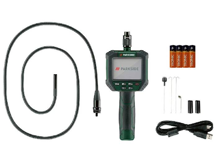 Aktuell gibt es bei Lidl die PARKSIDE® Inspektionskamera »PKI 2.8 B2« mit Display und Bildspeicher im Angebot für nur 43,94 €. Der Preisvergleich liegt aktuell bei 60,94 €. Lidl gibt zu der Inspektionskamera noch folgende Infos an: Ideal für Reparatur- und Wartungsarbeiten in Haushalt, Hobby, Kfz etc. Auch für feuchte Umgebungen geeignet (z. B. Abflussrohre) Bildaufnahmefunktion für bis zu 2000 Fotos auf integrierten Speicher Mikrokamera ist über flexiblen Schwanenhals mit Monitor-Handgerät verbunden Wasserdichte Kamerasonde und Schwanenhals (Ø 8 mm) mit 6 weißen; dimmbaren LEDs in 10 Helligkeitsstufen - Ip - 67 zertifiziert USB-Typ-C-Ausgang zum Verschieben von Bildern per Kabel auf Geräte wie Laptop oder Tablet Zum Überprüfen kleinster Hohlräume; Rohre oder schwer zugänglicher Stellen Separate Helligkeitsregulierung des Displays und der LEDs am Handgerät (Stufenanzeige im Display) 4-stufige Zoom-Funktion Stromversorgung über 4x AA-Batterien (inklusive) Mit praktischem Kunststoffkoffer für die sichere Aufbewahrung - Enthaltenes Zubehör: Magnetaufnehmer, Spiegel, Haken, Doppelhaken, USB-A-auf-USB-C-Kabel, Batterien Technische Daten: - Durchmesser Kamerakopf: 8 mm - Display: 2;8" Tft-Lcd mit 180° drehbarem Bild Display - Auflösung: 240 x 320 px - Schutzklasse: Ip - 67 Betriebszeit: ca. 750 min Material: Kunststoff, Metall Maße: - Handgerät mit Display: ca. 9,0 x 23,0 x 3,9 cm - Gesamtlänge Schwanenhals mit Kamerakopf und Adapterfuß: ca. 120 cm Gewicht: ca. 210 g EAN: 4054599045719