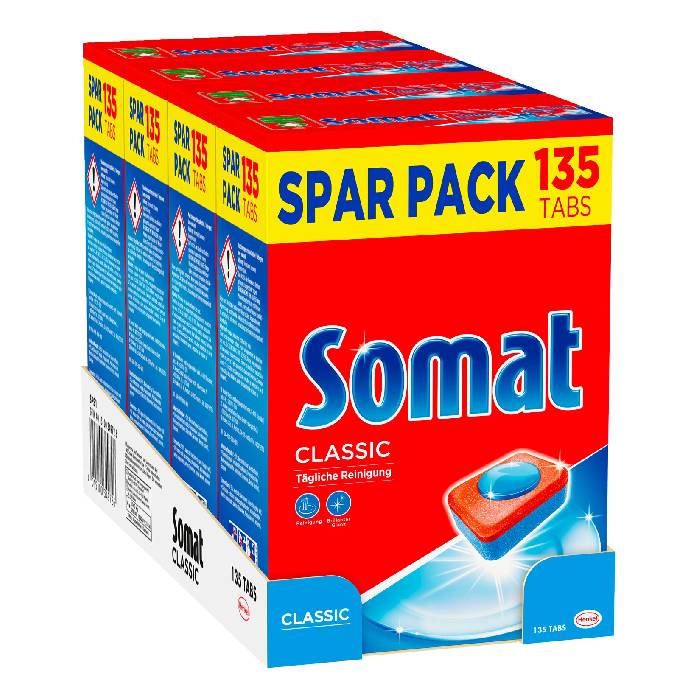 Bei Netto bekommt man aktuell das 4er Pack Somat Geschirrreiniger Tabs Classic mit je 135 Tabs pro Packung. Somit sind also 540 Tabs enthalten was einen Preis von ~ 0,13 € pro Tab ergibt. Im Preisvergleich kostet das Set 99,95 € also ~ 0,18 € pro Tab.