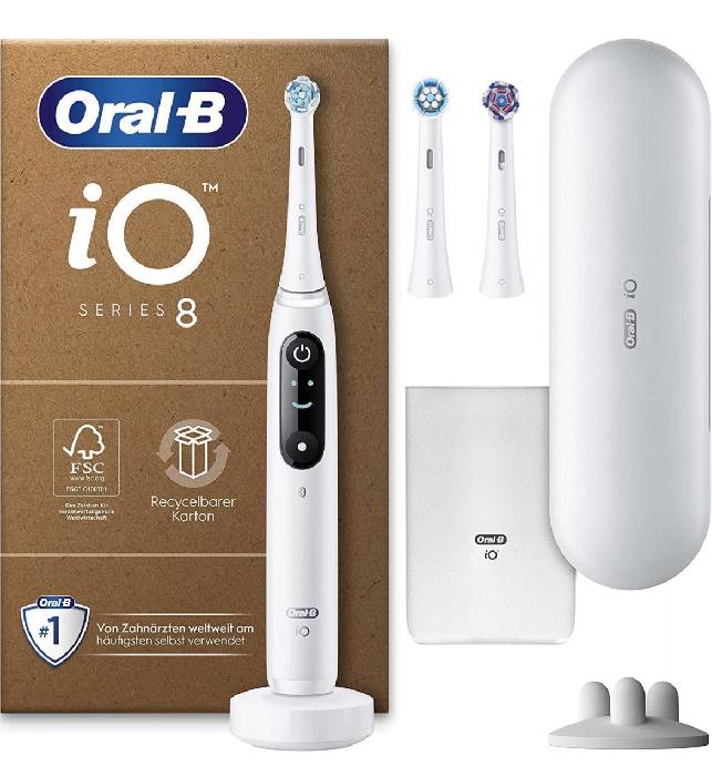 Amazon hat verschiedene Oral B Zahnbürsten im Angebot. Unter anderem die Oral-B iO Series 8 Plus Edition Elektrische Zahnbürste/Electric Toothbrush. Das Paket mit 3 Aufsteckbürsten und Reiseetui sowie Stellplatz kostet im Prime Black Friday Angebot 179,99 €. Normalerweise kostet dieses Paket 339,99 €.