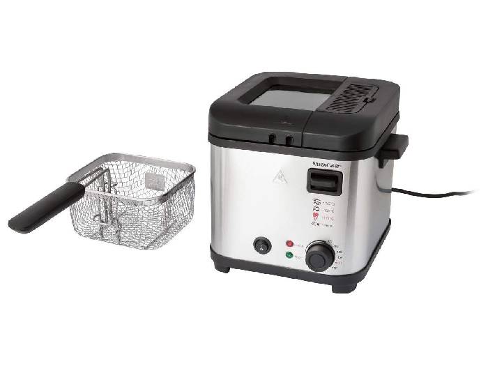 Aktuell gibt es bei Lidl die SILVERCREST® Mini-Fritteuse »SFM 850 A5« im Edelstahl-Design mit 850 Watt im Angebot für nur 29,94 €. Regulär zahlt man hier 34,94 €. Lidl gibt zu der Mini-Fritteuse noch folgende Infos an: - In hochwertigem Edelstahl-Design - Stufenlose Temperatureinstellung bis max. 190 °C - Antihaftbeschichteter Ölcontainer und spülmaschinengeeigneter Frittierkorb - Ölvolumen: max. 1,2 l - Frittierkorbvolumen: ca. 0,89 l bei Max-Markierung - Max. Menge Pommes Frites: 450 g - Abnehmbarer Deckel mit Sichtfenster und Fettfilter - Frittierkorb mit abnehmbaren Handgriff - Inkl. praktischer Kabelaufwicklung und Transportgriffe Technische Daten: - Leistung: 850 W - Kabellänge: ca. 100 cm Material: Kunststoff, Edelastahl, Aluminium, Silikon Maße: ca. B 24,3 x H 20,9 x T 25,5 cm Gewicht: ca. 1,804 kg EAN: 4054601017901