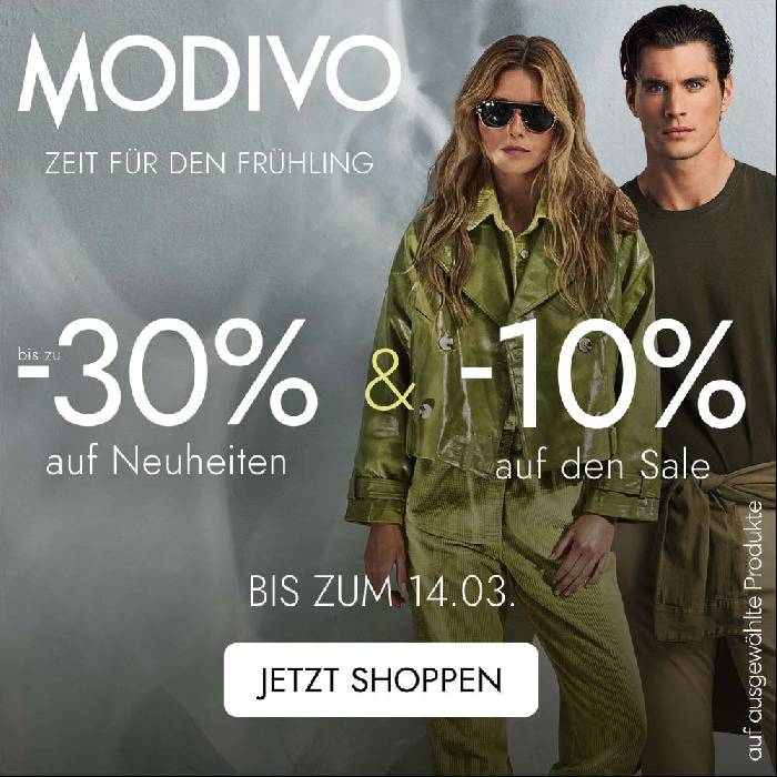 Mit dem Rabattcode „MOD30“ bekommt man bei Modivo aktuell bis zu -30% auf Neuheiten & -10% auf den Sale. Der Rabattcode ist nur auf ausgewählte Produkte anwendbar.
