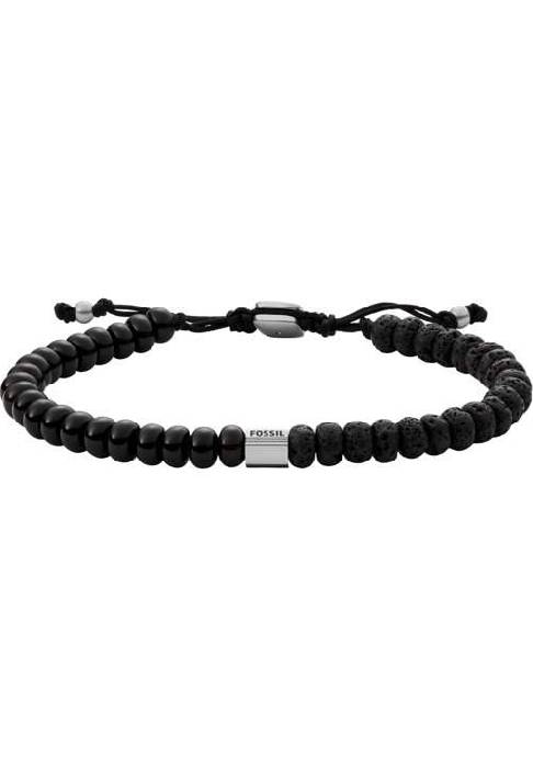 Fossil Herren Armband "Joyful Expression Beads JF03990040", Textil/Lavastein/Onyx, schwarz