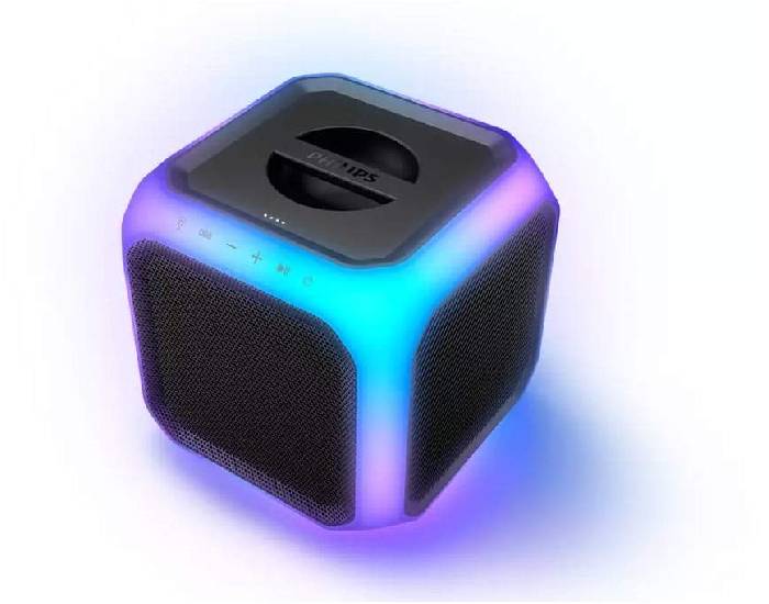 Zur Zeit bekommt man bei EURONICS den Philips TAX7207/10 Party-Lautsprecher für nur 239,98 €. Der Preisvergleich liegt aktuell bei 253,99 €. EURONICS gibt zu dem Party-Lautsprecher noch folgende Infos an: Mit diesem tollen Würfel-Lautsprecher und Lichteffekt kann die Party losgehen! Kraftvoller Sound, satte Bässe und Rundum-Beleuchtung sorgen für eine tolle Atmosphäre. Schließen Sie bis zu 50 Lautsprecher an und genießen Sie Lichtshow und Sound. Zusätzlicher Bass, 12 Std. Wiedergabezeit Dieser Karaoke-Würfel-Lautsprecher erfüllt den Raum mit sattem Sound und starken Bässen. Dank des integrierten Akkus sind auch Partys draußen möglich. Mit nur einer einzigen Ladung erhalten Sie bis zu 12 Stunden Wiedergabezeit. 360° Lichtshow Helle Lichtbalken pulsieren im halbtransparenten Lautsprecher und erzeugen eine futuristische Rundum-Lichtshow, passend zu Ihrer Musik. Die Lichter ändern Farbe und Puls im Takt zu Ihrer Musik. 2 Karaoke-Mikrofoneingänge Mit 2 Mikrofoneingängen können Sie aus Ihrer Party eine Karaoke-Party machen. Außerdem können Sie Echo-Effekte, Stimmenverzerrer für weibliche und männliche Stimmen sowie weitere Stimmeneffekte für den Gesang auswählen. Die Mikrofone und Effekte können über den Lautsprecher gesteuert werden. Bluetooth, USB und Audioeingang Verschiedene Verbindungsmöglichkeiten. Streamen Sie Ihre Musik über Bluetooth. Schließen Sie ganz einfach andere Geräte über den Audioeingang oder über USB an. Außerdem können Sie einen anderen Lautsprecher oder Verstärker über den Line-Ausgang anschließen. Lichtshow mit Sound Sie können bis zu 50 Lautsprecher miteinander verbinden. Lautsprecher können dank dem Griff an der Oberseite und dem Würfeldesign einfach übereinander gestapelt werden. So erhalten Sie eine Soundwand mit beeindruckender 360° Lichtshow für Ihre Party. EAN: 4895229126312