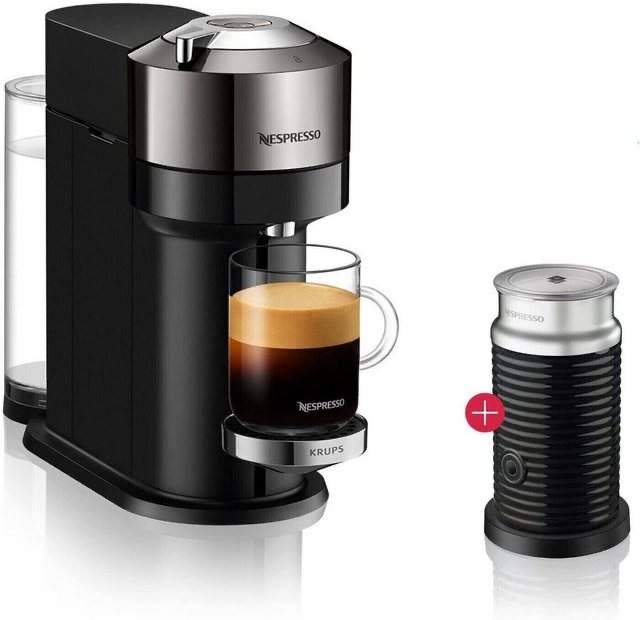 Krups Kapselmaschine Vertuo Next Chrome XN910C Kaffeemaschine, Aeroccino 3 Milchaufschäumer