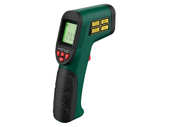 Bei Lidl bekommt man zur Zeit das PARKSIDE® Infrarot-Temperaturmessgerät »PTIA1« für nur 23,94 €. Der Preisvergleich liegt aktuell bei 26,94 €. Lidl gibt zu dem Infrarot-Temperaturmessgerät »PTIA1« noch folgende Infos an: - Zur schnellen Messung von Oberflächentemperaturen - Ideal zum Auffinden von Wärmebrücken und schimmelgefährdeten Stellen - Präzises Infrarot-Messsignal - 8-Punkt-Laser zur genauen Anzeige der Messfläche - Farbige Anzeige und Hinweiston bei Differenz zwischen ausgewähltem Referenzwert und aktuellem Messwert - - - Blau: Messung ist kälter als Referenzwert - - Rot: Messung ist wärmer als Referenzwert - - Grün: Messung entspricht ca. dem Referenzwert - - - Batteriewechselanzeige und Abschaltautomatik (ca. 60 Sekunden) - Ergonomischer Griff mit Softgrip-Ausstattung - Inkl. Batterie Technische Daten: - Betriebsarten: Einfache Messung / Referenzmessung - Messbereich: -50 bis +380 °C - Abweichung (>, 0 °C / <, 0 °C): ±, 1,5 °C / ±, 3 °C - Wählbare Referenzstufen: ±, 0,5 / 3 / 5,5 °C - Messeinheiten: °C und °F - Optik: 12 : 1 (Verhältnis Messabstand : Messbereich) Material: Kunststoff - Maßeca. 174 x 94 x 42 mm Gewicht: ca. 189 g - Warnhinweise - ACHTUNG! Laserstrahlung.ACHTUNG! Nicht in den Strahl blicken. Laserklasse 2. EAN: 4055333046139