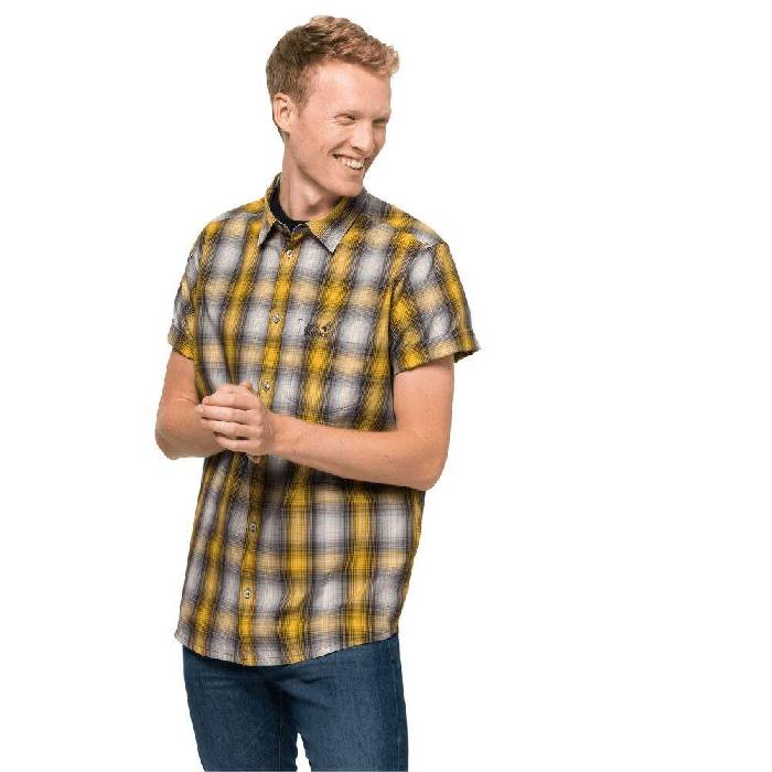 Jack Wolfskin Hot Chili Shirt Men Kurzarm Wanderhemd Herren L rot saffron orange checks