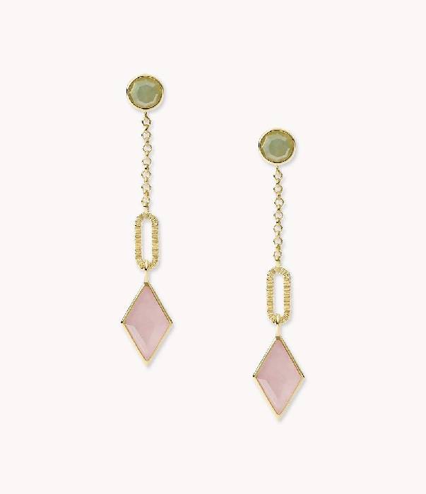 Fossil Damen Hängeohrringe Val Joyful Expression Aventurin grün Rosenquarz Metall vergoldet