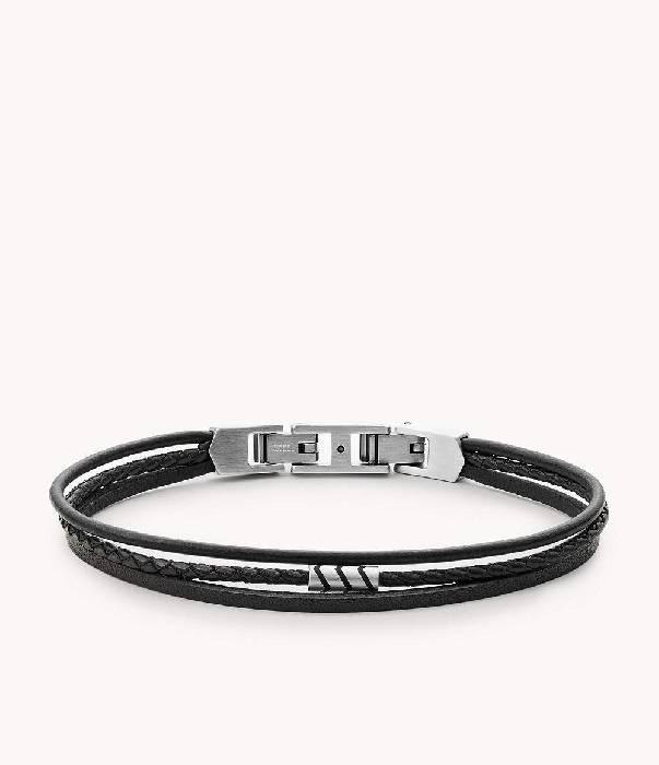 Fossil Herren Armband Vintage Casual mehrsträngig Leder schwarz