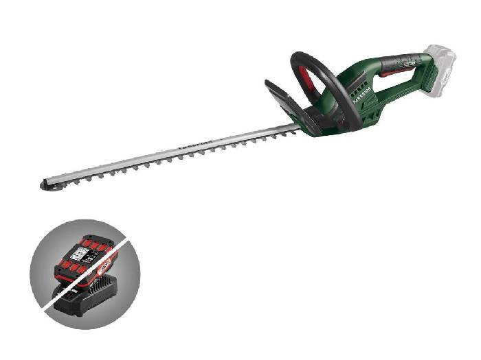 Aktuell gibt es bei Lidl die PARKSIDE® 20 V Akku-Heckenschere im Angebot für nur 45,94 €. Regulär zahlt man hier 53,94 €. Lidl gibt zu der 20 V Akku-Heckenschere »PHSA 20-Li B2« ohne Akku und Ladegerät noch folgende Infos an: - Lasercut-Qualitätsmesser mit Aluleitschiene und Anschlagschutz aus Metall - 2-Hand-Schutzschalter mit schnellem Messerstopp - Ergonomische Griffe mit rutschhemmender Softgrip-Ausstattung - Integrierte Wandaufhängung zur platzsparenden Aufbewahrung - Gerät kompatibel mit allen Akkus der Serie PARKSIDE X 20 V Team - Lieferung erfolgt ohne Akku und Ladegerät - Den passenden Akku sowie das Ladegerät kannst du hier bestellen. Enthaltenes Zubehör: 1x Messerschutzköcher Technische Daten: - Hubzahl im Leerlauf: max. 2600 min-¹ - Leerlaufdrehzahl: 1300 min-¹ - Schnittlänge: ca. 51,6 cm - Astdurchmesser: max. 16 mm Material: Aluminium, Kunststoff Maße: ca. 96,2 x 22,4 x 19 cm Gewicht: - Heckenschere (ohne Akku): ca. 2320 g - Messerschutz: ca. 125 g Alle kompatiblen Geräte unserer 20-Volt-Serie findest du hier: EAN: 4055334864985