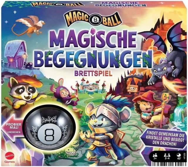 Aktuell gibt es bei OTTO das MATTEL GAMES Familienspie „Magic 8 Ball - Magische Begegnungen“ im Angebot für nur 22,94 €. Der Preisvergleich liegt aktuell bei 26,99 €. OTTO gibt zu dem Spiel noch folgende Infos an: Mit dem Magic 8 Ball Magical Encounters-Brettspiel reisen Spieler in ein Land voller Abenteuer und Mysterien – perfekt für die ganze Familie. Das Königreich versinkt im Chaos, während Gadworm der Drache das Land terrorisiert. Und nun liegt es an den Helden des Waldlands, das Königreich zu retten. Bei diesem kooperativen Brettspiel mit original Magic 8 Ball-Zauberkugel müssen Spieler zusammenarbeiten und erleben einen magischen Spieleabend für Kinder und Erwachsene ab sieben Jahren. Abweichungen in Farbe und Gestaltung vorbehalten. EAN: 0194735160426