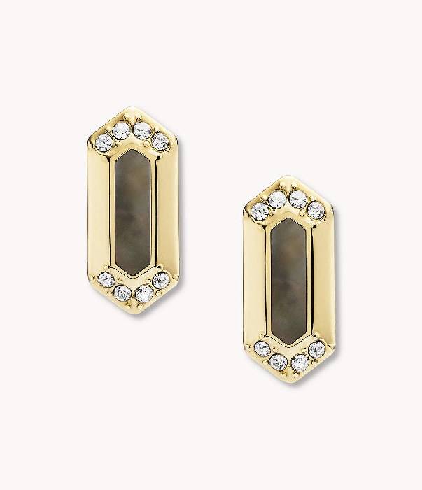 Fossil Damen Ohrstecker Val Black and Gold Perlmutt schwarz