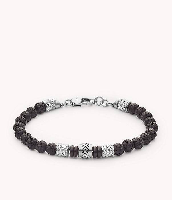 Fossil Herren Armband Heritage Beads Lavastein Achat schwarz