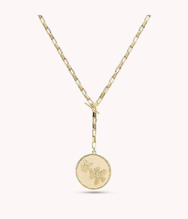 Fossil Damen Kette Georgia Vintage Flower Y-Form Edelstahl goldfarben