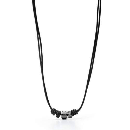 Fossil Herren Kette "JF00501797", Leder/Edelstahl, Schwarz, onesize