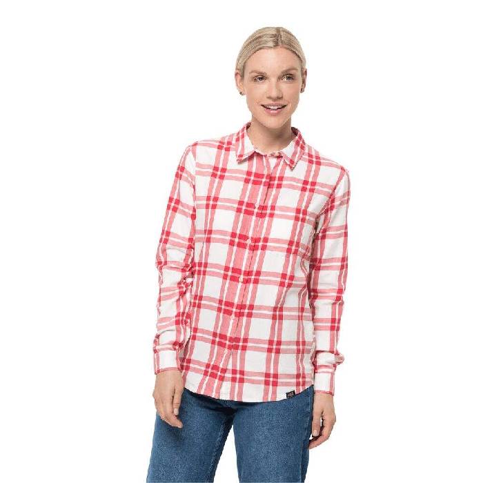 Jack Wolfskin Passenger Shirt Women Damen Flanellhemd aus Bio-Baumwolle S coral red checks coral red checks