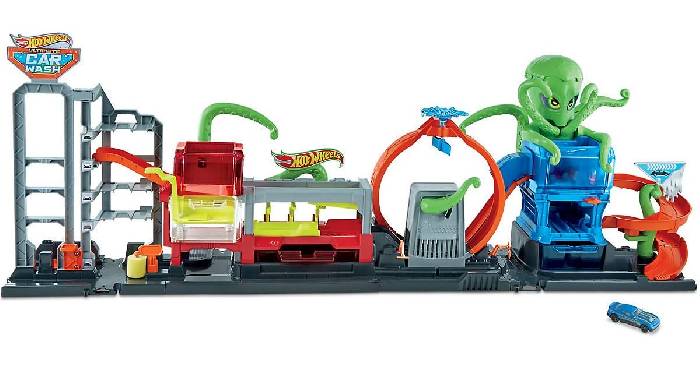 Aktuell gibt es bei myToys die Mattel Hot Wheels City Color Reveal Autowaschanlage, inkl. 1 Farbwechsel-Spielzeugauto im Angebot für nur 62,94 €. Im Preisvergleich zahlt man zur Zeit 70,30 €. myToys gibt zu der Hot Wheels City Color Reveal Autowaschanlage noch folgende Infos an: Dieses coole Hot Wheels Color Reveal-Spielset in Form einer Autowaschanlage sorgt für jede Menge Spielspaß! Das enthaltene Fahrzeug wartet mit einigen Farbüberraschungen auf: Zuerst zeigt es sich mit einer grünen Beschichtung, aber sobald es den ersten, mit Wasser befüllten Tank passiert hat, kommen die tollen Verzierungen zum Vorschein. Weiter geht es dann zum Oktopus, der ebenfalls mit Wasser befüllt werden kann. Spritzt man nun mithilfe der Tentakel das Fahrzeug nass, erscheinen weitere Verzierungen auf dem Auto. Und wiederholbar ist das Ganze auch noch: Einfach in warmes Wasser tauchen und das Fahrzeug sieht aus wie am Anfang. Das zusammenklappbare Spielset bietet neben dem Wasserspaß dank des Loopings, der Spirale und der Rampe aber auch tolle Rennaction. Damit nichts vom Wasser verschüttet wird, während das Auto durch die Bahn rast, wird das Wasser in abnehmbaren Behältern aufgefangen. Details: - Farbe des Hot Wheels Autos wechselt durch Berührung mit Wasser - mit einem Looping, einer Spirale und einer Rampe - kann mit anderen Hot Wheels Sets verbunden werden - inkl. Fahrzeug Maße: Länge ca. 120 cm EAN: 0887961920918