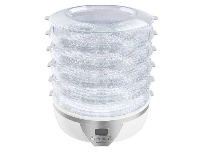 Bei Lidl bekommt man zur Zeit den SILVERCREST® Dörrautomat »SDA 350 A2« inkl. Timer für nur 40,94 €. Der Preisvergleich liegt aktuell bei 49,94 €. Lidl gibt zu dem Dörrautomat noch folgende Infos an: - Zum Trocknen von Früchten, Gemüse, Kräutern, Fleisch und Fisch - Zur gesundheitsbewussten Zubereitung von Dörrobst ohne Zusatz von Konservierungsstoffen - Auch für Beef Jerky geeignet - 5 stapelbare Aufsätze – auch einzeln verwendbar - Digitales Display zum Einstellen von Temperatur und Dauer - Temperatur: 40-70 °C (in 5-°C-Schritten einstellbar) - Timer: für bis zu 48 Std. Dauerbetrieb - Leistung: ca. 350 W - Behälter und Deckel spülmaschinengeeignet und BPA-frei Material: Edelstahl, Kunststoff Maße: ca. 33,4 x 33,5 x 22,4 cm Gewicht: ca. 3,07 kg EAN: 4054601012340
