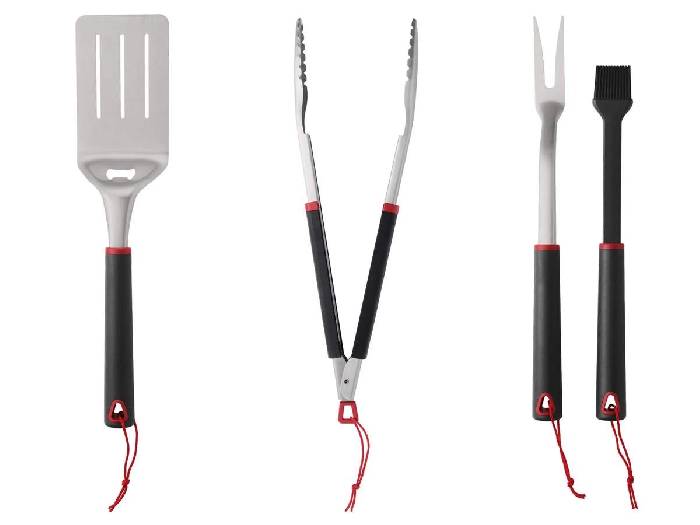 Aktuell gibt es bei Lidl das GRILLMEISTER Grillzubehör mit Softgrip-Ausstattung im Angebot für je nur 10,94 €. Der Preisvergleich liegt aktuell bei 12,94 €. Lidl gibt noch folgende Infos an: - Griff mit rutschhemmender Softgrip-Ausstattung - Mit praktischer Aufhängekordel - Spülmaschinengeeignet - Funktionskopf hitzebeständig bis 250 °C - Grillwender: - Kopf aus Edelstahl - Inkl. integriertem Flaschenöffner - Grillzange: Kopf aus Edelstahl - Grillgabel und Marinierpinsel: - Grillgabel mit Kopf aus Edelstahl - Silikon-Marinierpinselkopf mit Stiel aus Kunststoff - 2-teilig Material: - Grillwender: Edelstahl, Kunststoff - Grillzange: Edelstahl, Kunststoff - Grillgabel und Marinierpinsel: - Grillgabel: Edelstahl, Kunststoff - Marinierpinsel: Kunststoff, Silikon Maße: - Grillwender: ca. L 40 cm (inkl. Aufhängeöse) - Grillzange: ca. L 44 cm (inkl. Aufhängeöse) - Grillgabel und Marinierpinsel: - Grillgabel: ca. L 40 cm - Marinierpinsel: ca. L 35 cm Gewicht: - Grillwender: ca. 217 g - Grillzange: ca. 290 g - Grillgabel und Marinierpinsel: - Grillgabel: ca. 135 g - Marinierpinsel: ca. 120 g EAN: 4334036072868