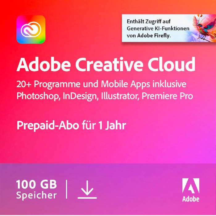 Bei Amazon bekommt man die Jahreslizenz der Adobe Creative Cloud mit allen Apps aktuell für 399,99 €. Normal kostet die Lizenz 767,84 €. Mit enthalten sind: - Grafik Design Software - Generative KI Features - Vektor-Illustration, Layout und Bildbearbeitung - für PC/Mac