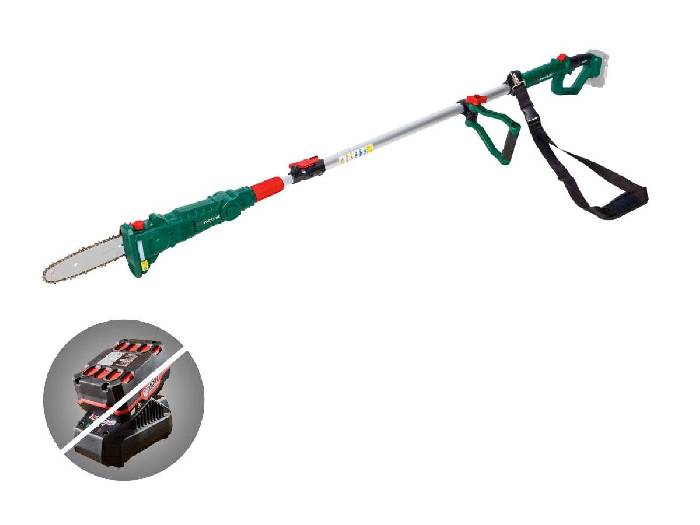 Der PARKSIDE® 20V Akku-Hochentaster »PAHE 20-Li C3« ist bei Lidl für 54,94 € inklusive Versandkosten von 4,95 € erhältlich. Im Preisvergleich bezahlt man für das Produkt aktuell 64,94. Das Gerät ist kompatibel mit allen Akkus der Serie PARKSIDE X 20 V Team und wird ohne Akku und Ladegerät geliefert. Das Produkt verfügt über folgende Eigenschaften: - Zum komfortablen, kabellosen Sägen bis in 4 m Höhe - Trennt Äste bis zu einer Stärke von 20 cm - Neigbarer Sägekopf zur optimalen Schnittführung auch an schwer zugänglichen Stellen - Werkzeuglose Ketten-Schnellspannung - Automatisches Kettenölsystem - Verstellbarer Schultergurt mit gefedertem Karabinerhaken - Aluminium-Teleskoprohr mit ca. 82 cm Einstellbereich und Schnellverschluss - Robustes Motorgehäuse mit Ölstandsfenster - Antirutschgriff mit Sicherheitsschalter - Kettengeschwindigkeit: max. 5 m/s - Gesamtlänge: ca. 270 cm - Schnittlänge: ca. 20 cm - Maße ca. 185,6 x 34 x 14,9 cm (ohne Akku) - Gewicht: ca. 3,35 kg (ohne Akku) Enthaltenes Zubehör: 1 Schwertschutzhülle, Montagewerkzeug, 100 ml Bio-Kettenöl „Made in Germany”. EAN: 4055329076553