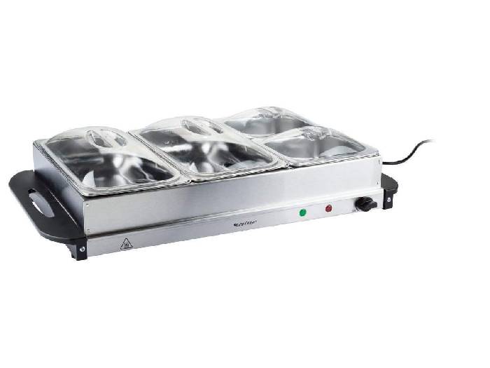 Bei Lidl bekommt man zur Zeit den Silvercrest Buffetwärmer »SBW 300 A1« für nur 34,94 €. Regulär zahlt man hier 49,94 €. Lidl gibt zu dem Buffetwärmer »SBW 300 A1« noch folgende Infos an: - Zum Aufwärmen, Warmhalten und Servieren von Speisen - Mit Temperaturregelung (45°- 85° C, stufenlos einstellbar) - 4 Edelstahlschalen mit transparenten Deckeln - Edelstahlschalen sind spülmaschinengeeignet - Heizplatte mit Warmhaltefunktion - Betriebs- und Bereitschaftskontrollleuchten - Cool-Touch Griffe - Mit Antirutschfüßen Technische Daten: - Leistung: 300 W - Fassungsvolumen: 2 x 2,4 l, 2 x 1,1 l Material: Edelstahl, Kunststoff - Maßeca. 64 x 14 x 36,5 cm Gewicht: ca. 4 kg EAN: 4055334262170