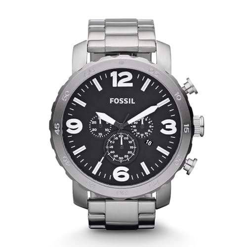 Fossil Uhr für Herren Nate, QuarzChronographenwerk, 50 mm silbernes Edelstahlgehäuse mit Edelstahlarmband, JR1353