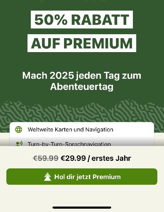 Das Komoot Premium Paket gibt es aktuell im Neujahressale für 29,99 €. Normal kostet das Paket 59,99 €. Komoot ist eine App, bei der man Kartenmaterial für verschiedene Arten von Sport nutzen kann. Zum Beispiel für das Wandern oder Bikepacking. Komoot bietet die Möglichkeit gezielt für dein konkretes Abenteuer eine Tour herauszusuchen. Wenn du zum Beispiel eine Mountainbike Strecke suchst oder lieber entspannt einen Tagesausflug mit wenigen Höhenmetern suchst. Die Karten sind Weltweit und auch offline vorhanden.