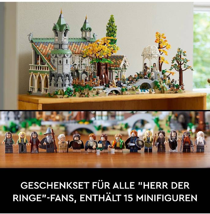 Im Prime Angebot gibt es das LEGO Icons DER Herr DER Ringe: BRUCHTAL, Großes Set für Erwachsene mit 15 Minifiguren für 408,00 € statt 499,99 €.