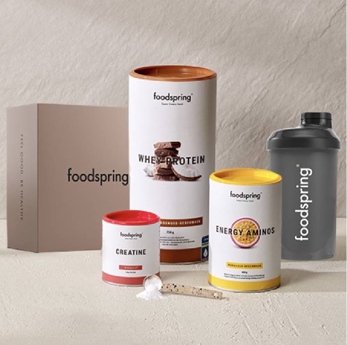 Die Muskelaufbau Box von foodspring® gibt es aktuell im Angebot für 59,99 €. Normalerweise kostet das Paket 80,97 €. Foodspring gibtbunter anderen diese Informationen zu dem Paket an: Du willst fit werden und stärkere Muskeln aufbauen? Mit dem Muskelaufbau Paket Basic erhältst du drei besonders starke Produkte, die dir dabei helfen, besonders intensive Workouts durchzupowern und schnelle Erfolge zu erzielen: Whey Protein für den Muskelaufbau, Energy Aminos für den ultimativen Energie-Kick vor dem Training und Creatine zur Steigerung deiner körperlichen Leistung** während hochintensiver Trainingseinheiten. - Whey Protein zur Förderung des Muskelaufbaus und anaboler Prozesse im Körper. - Energy Aminos mit Koffein und Vitaminen gegen Müdigkeit.* - Creatine Pulver zur Unterstützung der Energiezufuhr während des Trainings. - Plus: Ein gratis foodspring Shaker!