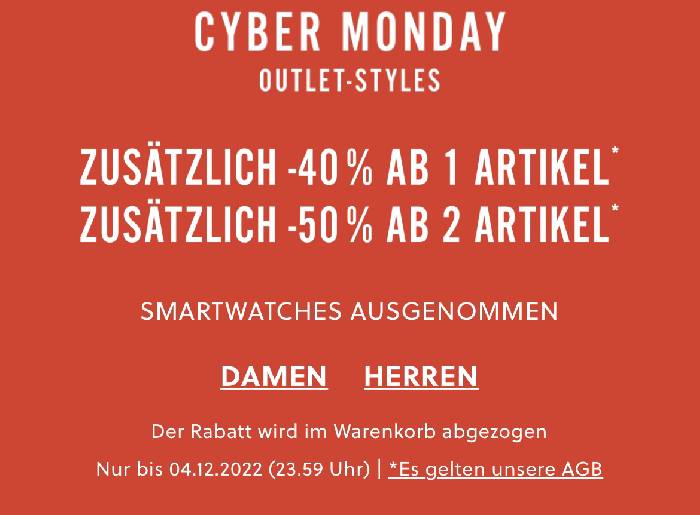 Bei Fossil gibt es noch Cyber Monday Angebote. Wer aus dieser Auswahl zwei Produkte auswählt und kauft, erhält 50% auf den gesamten Einkauf. Zum Beispiel könnte man die Damen Tasche Sydney - Satchel für normal 118,00 € und die Kameratasche Brennon für normal 118,00 € kaufen und insgesamt nur 118,00 € zahlen.