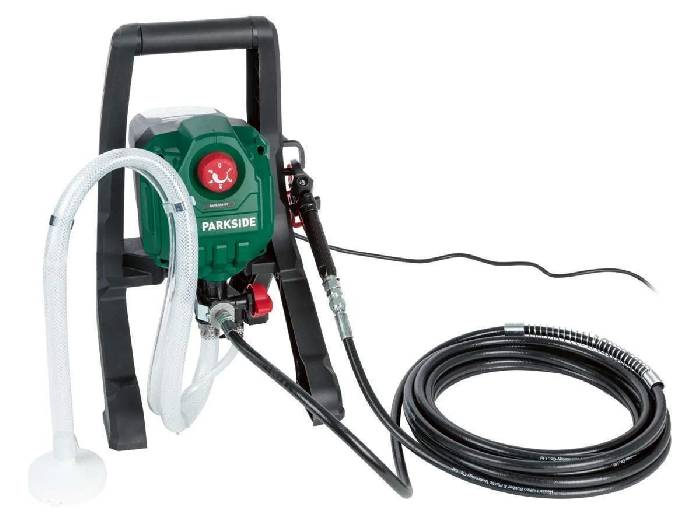 Bei Lidl bekommt man zur Zeit das PARKSIDE® Airless Farbsprühsystem »PAFS 550 A1« mit 550 Watt und 110 bar für nur 154,95 €. Im Preisvergleich zahlt man hierfür 174,95 €. Lidl gibt zu dem Airless Farbsprühsystem noch folgende Infos an: - Druckreduziertes und sprühnebelarmes Airless-System mit gleichmäßigem Farbauftrag - Farbauftrag mit horizontalem oder vertikalem Flachstrahl - Für alle glatten oder strukturierten Flächen im Innen- und Außenbereich - Geeignet für dick- und dünnflüssige Farben, Lacke und Lasuren auf Wasserbasis - Großer Arbeitsradius durch flexiblen und faserverstärkten 9 m langen Arbeitsschlauch - Ergonomische Spritzpistole mit 2 auswechselbaren Düsen für dick- oder dünnflüssige Material: ien - Einstellbare Druckstufen über großes Wählrad - 1 m langer Ansaugschlauch für Direktaufnahme aus dem Farbeimer - ohne Um- oder Nachfüllen - Integriertes Düsen-Aufbewahrungsfach - Standsicherers Gestell mit rutschhemmenden Softtouch-Tragegriff - Ansaugung direkt aus dem Farbeimer Enthaltenes Zubehör: 2 Düsen (für dick- und dünnflüssige Materialien), 2 Filter (1 x vormontiert), 1 Viskositätsmessbecher Technische Daten: - Farbdurchsatz: max. 1250 ml/min - Arbeitsdruck: max. 110 bar - Arbeitsschlauch: 9 m - Nennaufnahme: 550 W - Ansaugschlauch: 1 m - Farbauftragsleistung: max. 7 m²/min (bei 50 DIN-sek und 21 °C Umgebungstemperatur) - Viskosität: max. 100 DIN-sek Material: Aluminium, Kunststoff Maße: - Grundgerät: ca. 36,1 x 29,9 x 47,9 cm - Pistole: ca. 13,8 x 21,5 x 5,0 cm - Netzkabellänge: ca. 3 m Gewicht: Gerät (inkl. Zubehör): ca. 7,439 kg EAN: 4055329059129