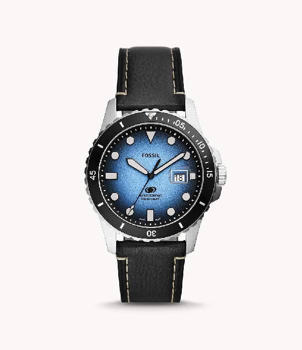 Fossil Herren Uhr Fossil Blue 3-Zeiger-Werk Datum LiteHide-Leder schwarz