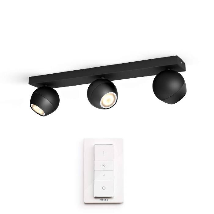 Philips Hue White Ambiance Buckram Spot 3flg. 3x350lm + Dimmschalter - schwarz