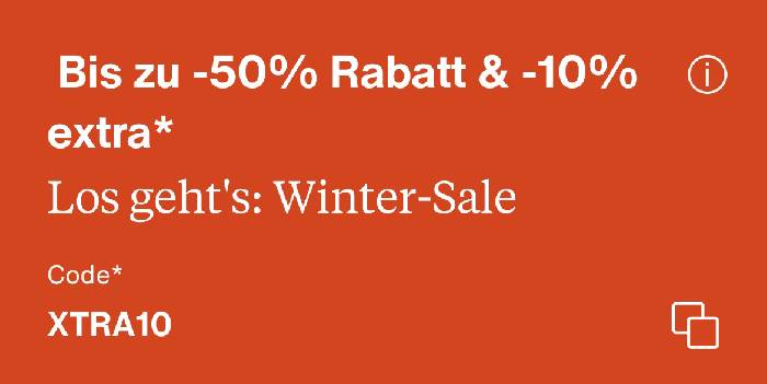 Bei Zalando geht es nun in den Winter Sale. Viele Artikel sind bis zu 50% reduziert. Mit dem Code XTRA10 gibt es nochmal bis zu 10% oben drauf.