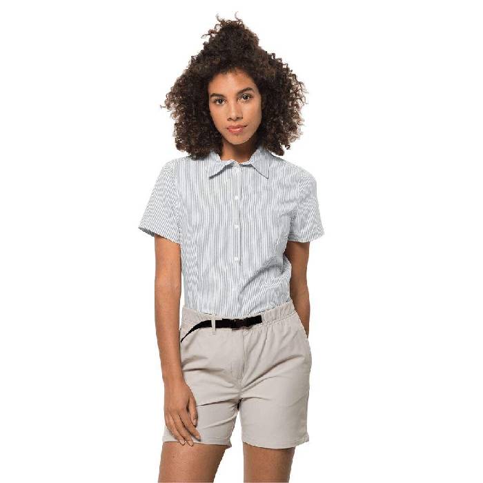 Jack Wolfskin South Port SS Shirt Women Kurzarm Funktions-Bluse Frauen L teal grey stripe