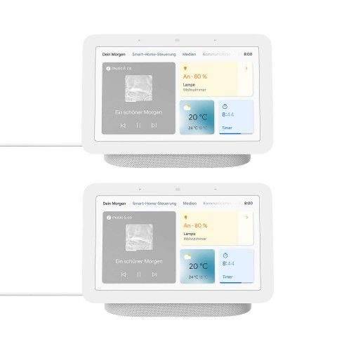 Google Nest Hub (2. Generation) 2er-Pack. Die Vorteile des Produkt-Sets im Überblick: Die Zentrale für Dein Smart Home Video- und Musikwiedergabe jetzt mit 50 Prozent mehr Bass Schlafanalyse mit dem Schlafsensor Hergestellt aus 54 Prozent recycelten Materialien Google Assistant integriert Gut organisiert durch den Tag Digitaler Bilderrahmen
