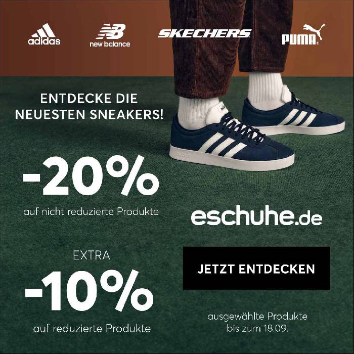 Mit dem Rabattcode „SNEAKERS“ gibt es bei eschuhe bis zu -20 % auf ausgewählte Produkte! Der Gutschein gilt bis zum 18.09.